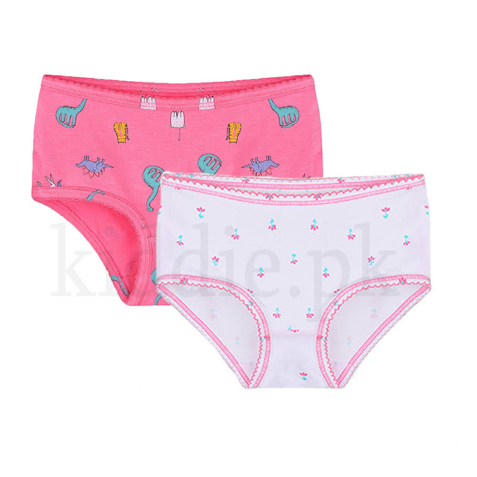 CRT Pack of 2 White and Pink Flower Pink Dinosaur Printed Panties 1522