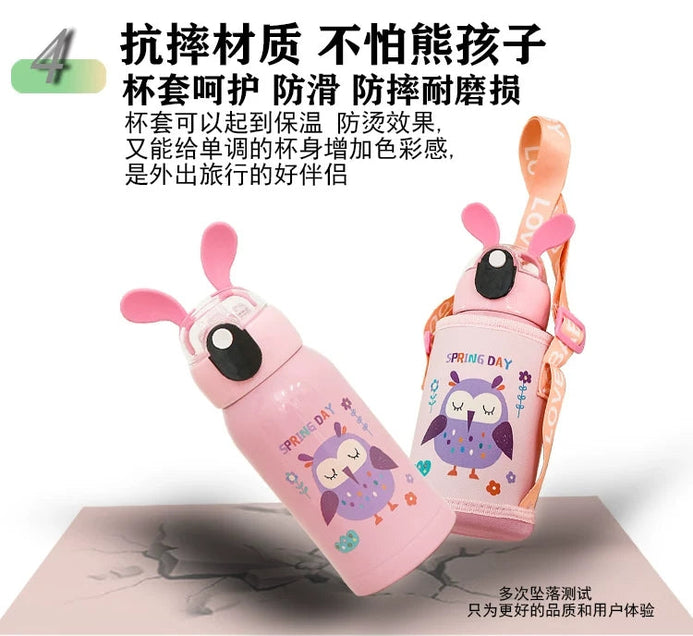 500ml Kids 316 Stainless Steel Straw Thermos Cup Temperature LED Display Thermos Water Bottle Cartoon Leak-Proof Mug Children Gifts