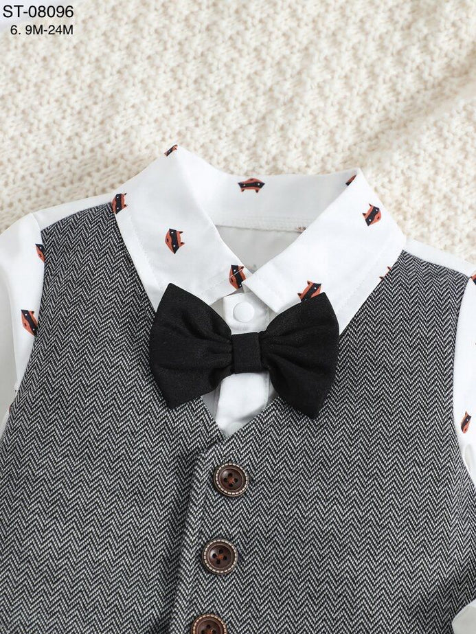 Gentelman Vest Style Bodysuit Bow with Bottom Set 13326