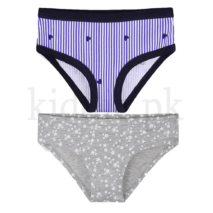 TZ Pack of 2 Blue and White Lining with Grey Star Printed Panties 1540