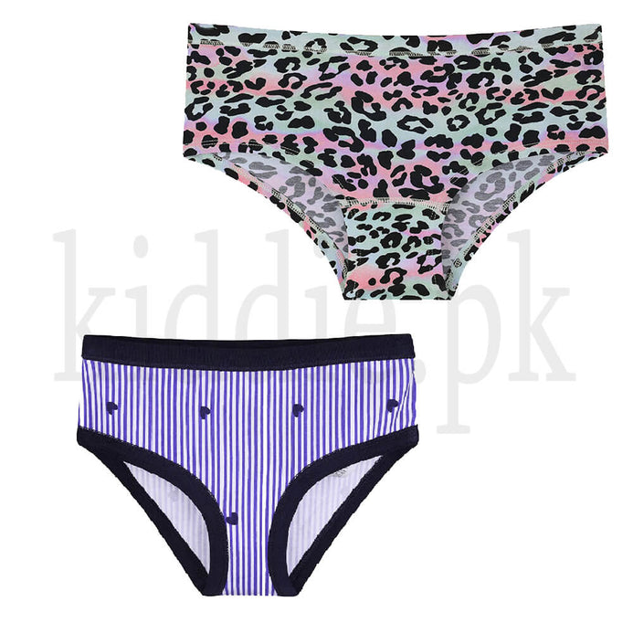 TZ Pack of 2 Blue and White with Pink and Green Pattern Panties 1568