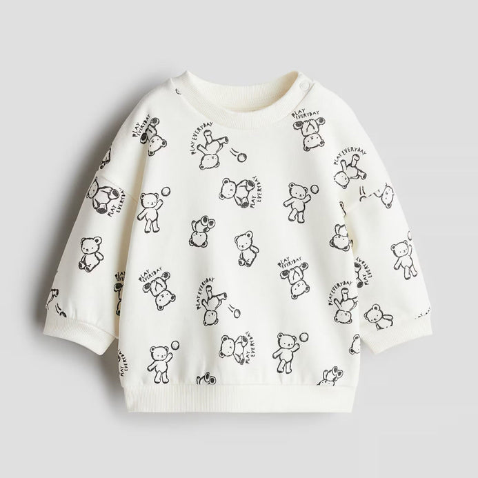Medium. 100% cotton fabric. Neck closure. Standard design. Oversize design. Rounded neck. Long sleeve. Cable knit finish. Press stud fastening on the back.