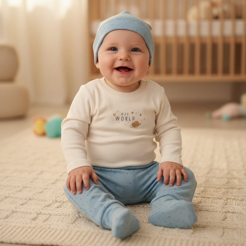 World Full Sleeves Romper with CAP and Trouser 3 piece set Bodysuit 13789