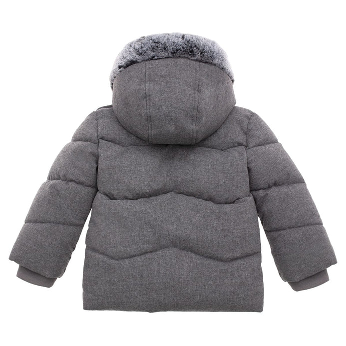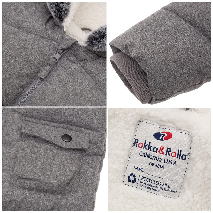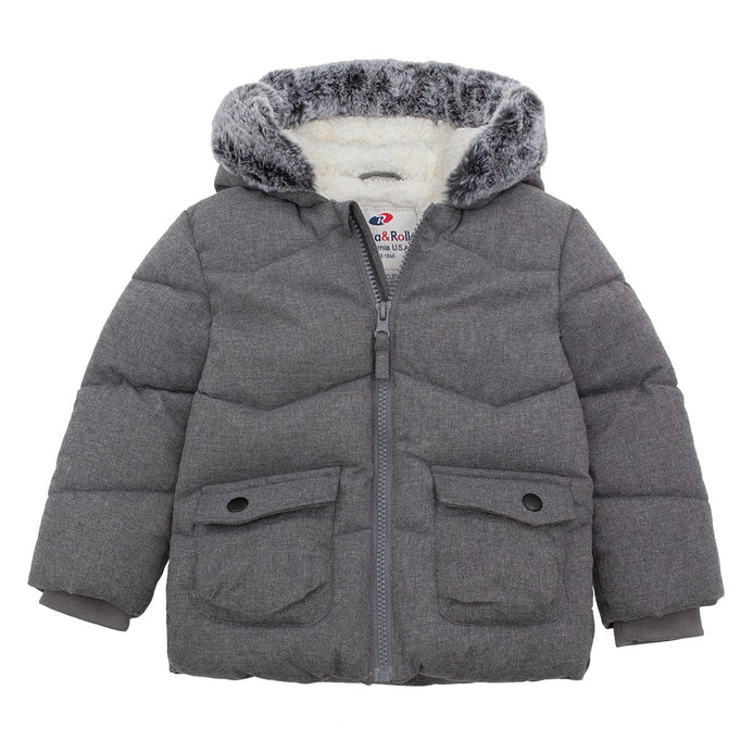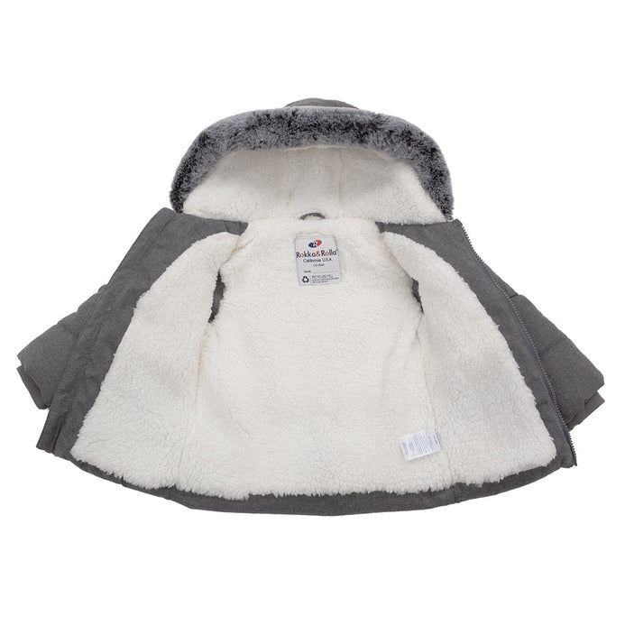 Rokka Rolla Thick Sherpa Lined Fur Trim Grey Hooded Puffer Jacket 13165