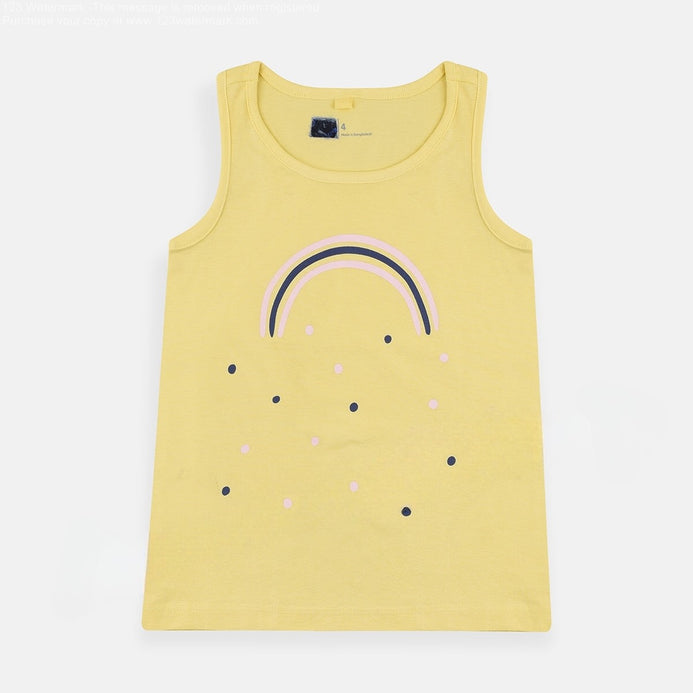ANK Black and white dotes Yellow Sleeveless Shirt 7339