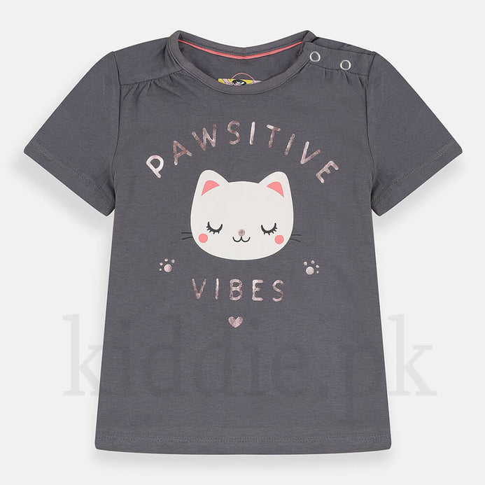 Baby Dark Grey Pawsitive Vibes Printed T-shirt 1347