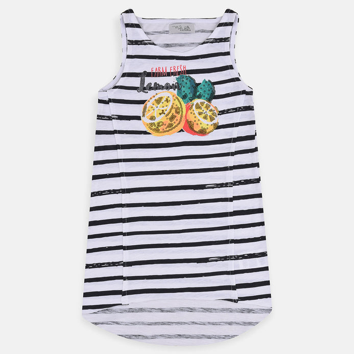 MADA Fresh Lemon Black Lining White Sleeveless Long Shirt 6793