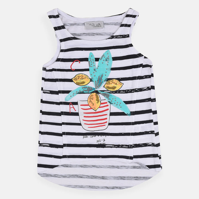 MADA Lemonade Black Lining White Sleeveless Long Back Shirt 6791