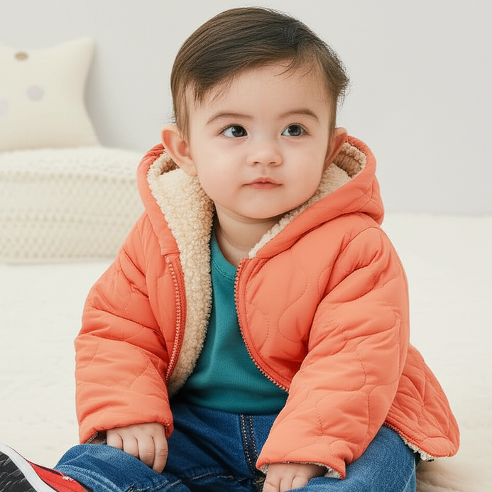 Mini Balabala Fur Peach Pink Dual Sided Hooded Puffer Jacket 13318