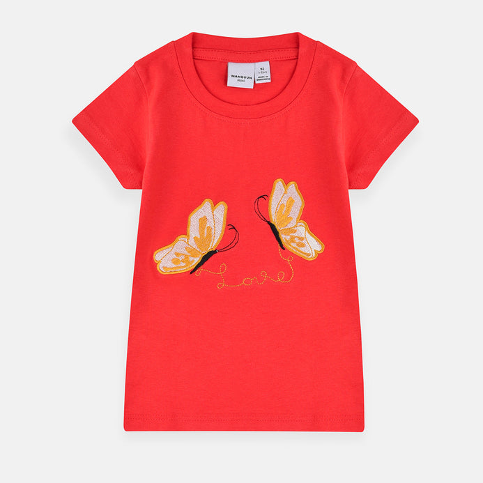 MNGN Butterfly Embroided Red Shirt 6510