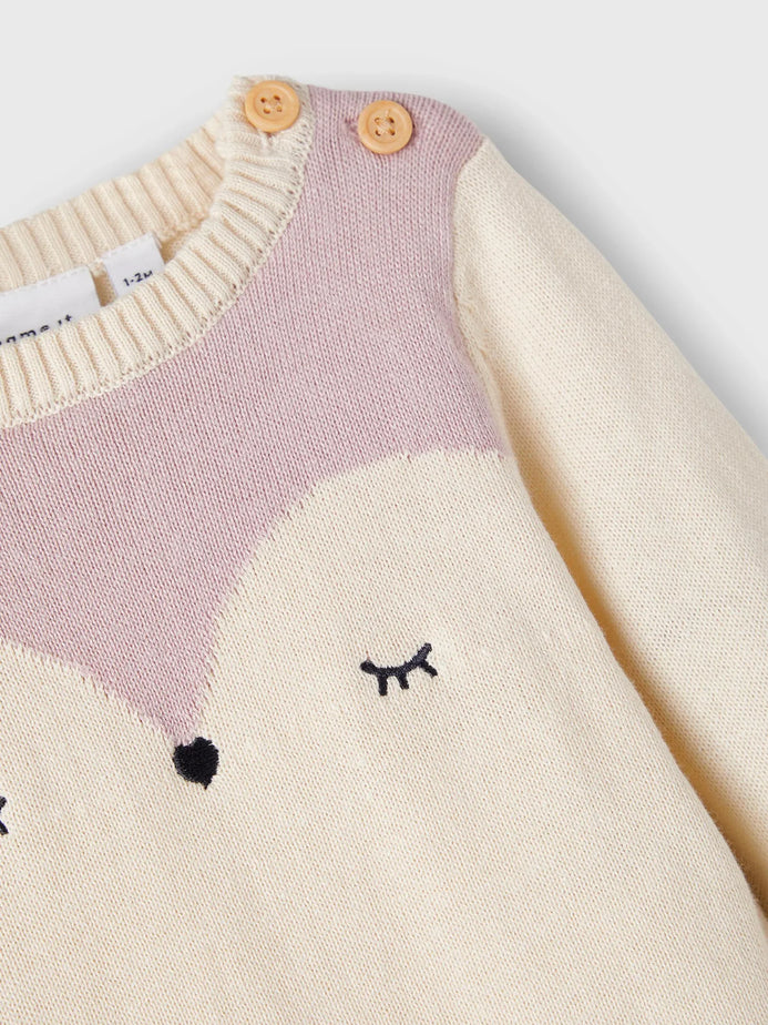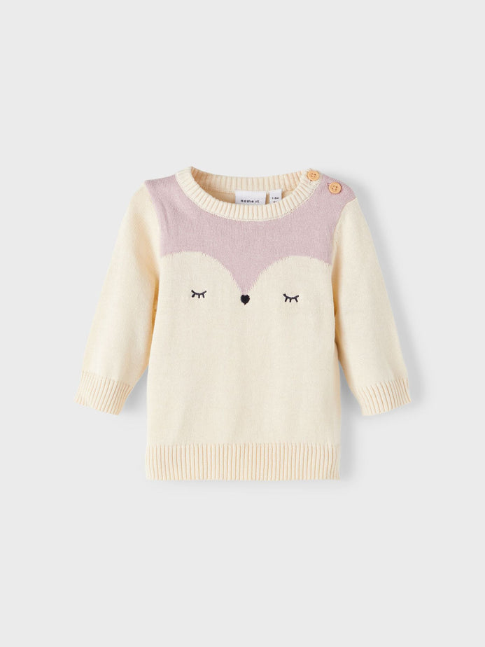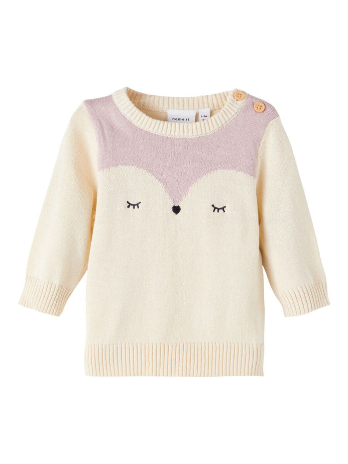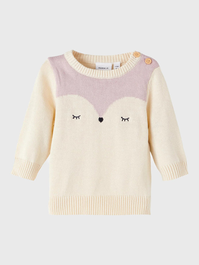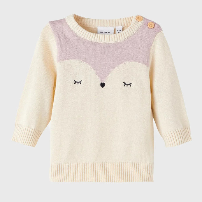 NME IT Fox Ecru Face Cream Knitted Sweater 11537