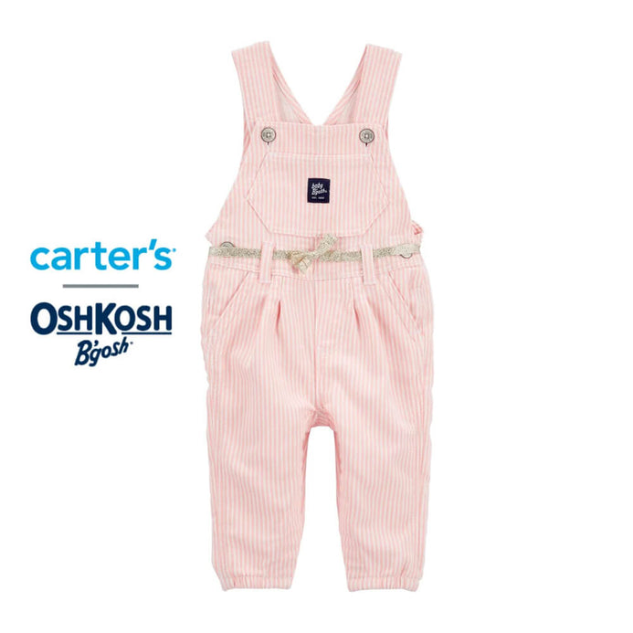 OSH KSH Pink Hickory Stripe Dungaree with Ribbon Belt 5064