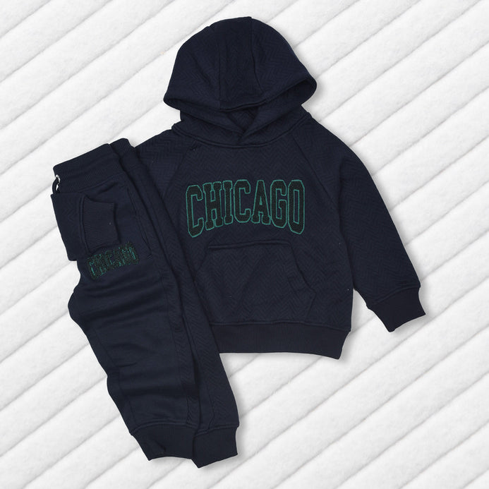 PMK Quilted Chicago Embroided Blue Hooded Tracksuit 13337