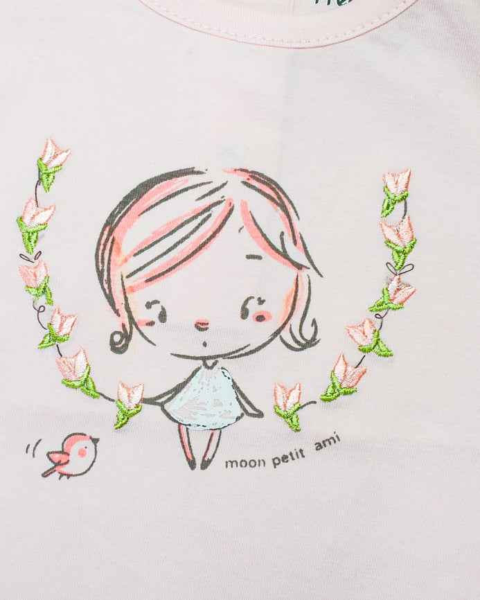 PRN Girl Embroided Flower Pink Shirt #13621
