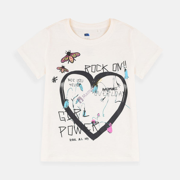 Rock On Off White Heart Girl Power Organic Cotton Shirt 8262