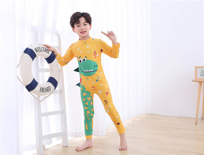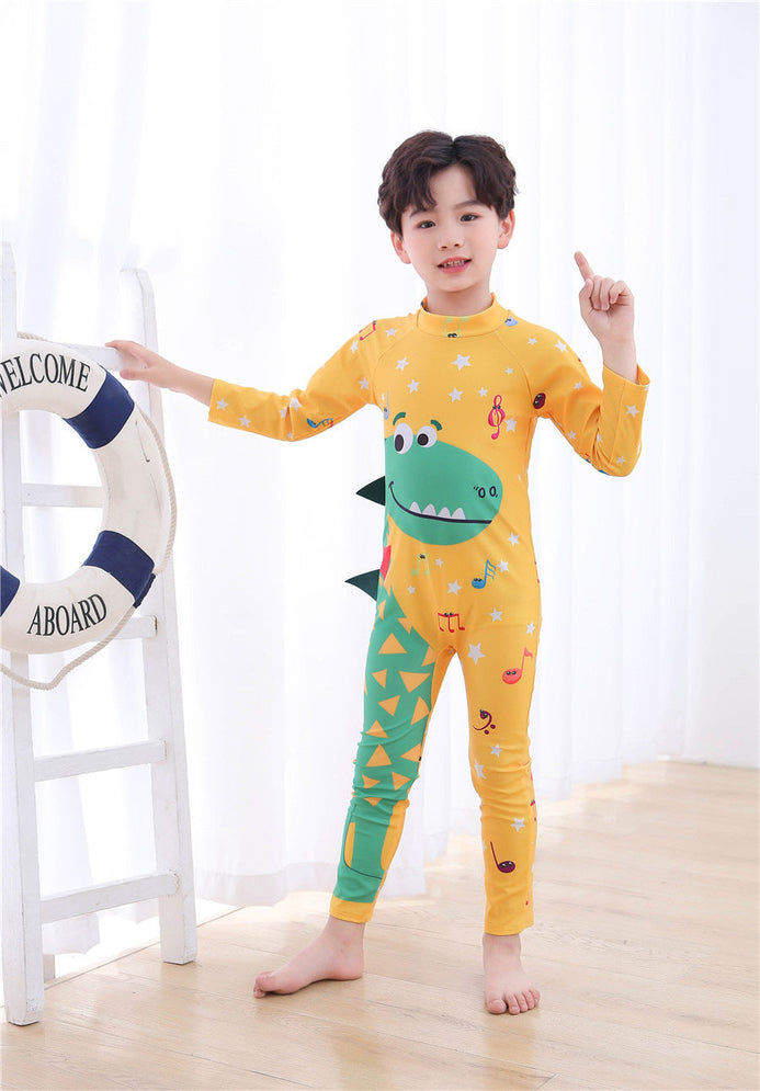 Dino Yellow Unisex Swimsuit with Cap 13643