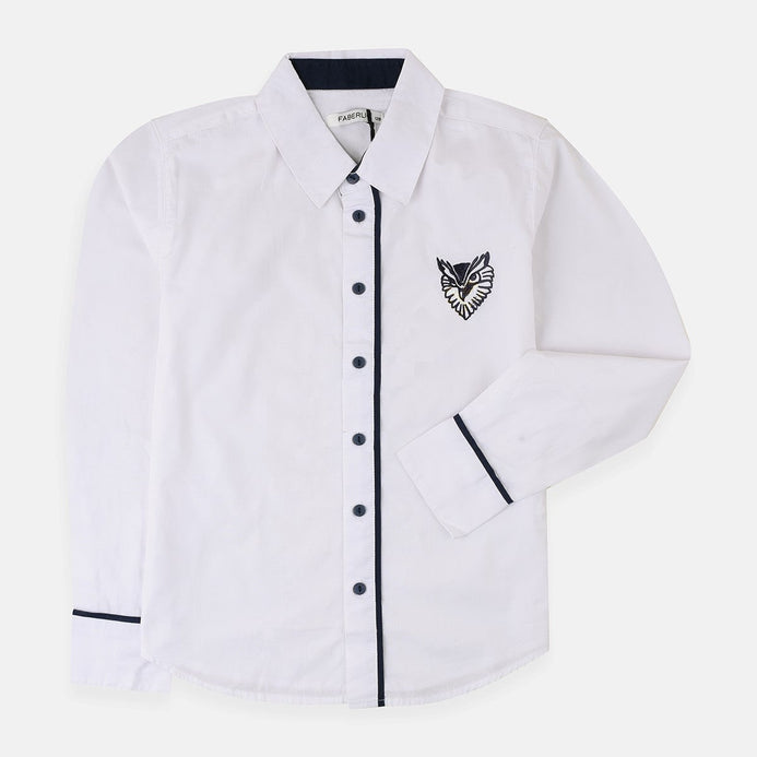 FBRTC Bird Face Embroided White Full Sleeves Shirt 8087
