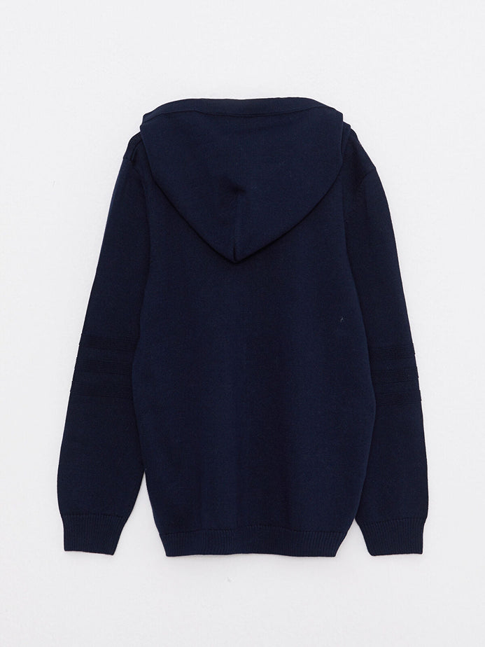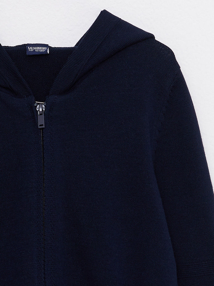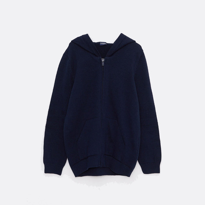 LCW Zipper Knitted Blue Hooded Cardigan 12552