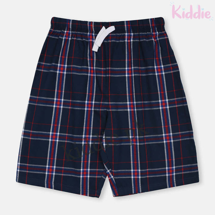 Cut Labelled Dark Blue Cotton Check Shorts 3848