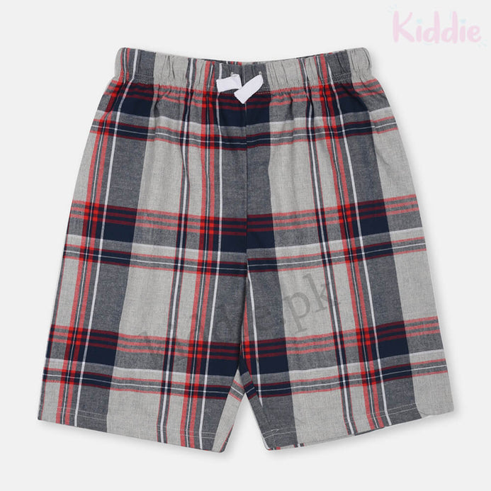 Cut Labelled Grey and Blue Cotton Check Shorts 3847