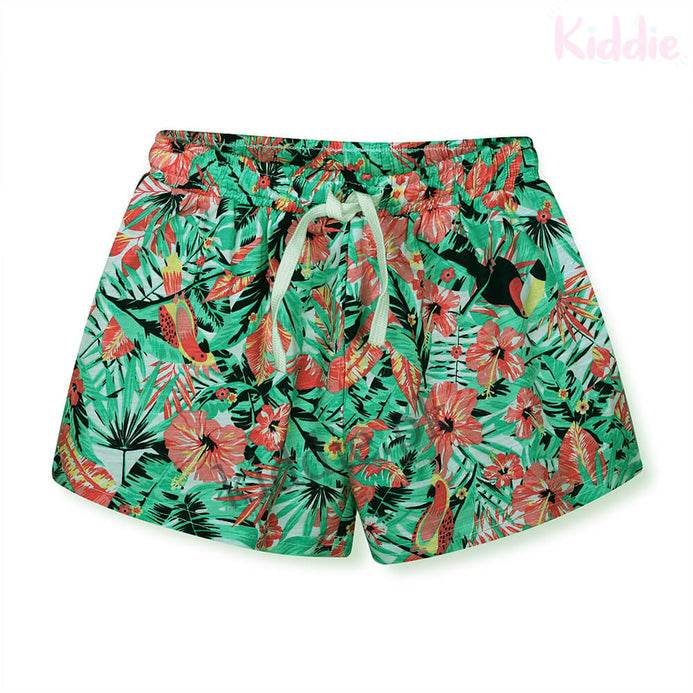 Leafs and Flowers Off Green Shorts 3175