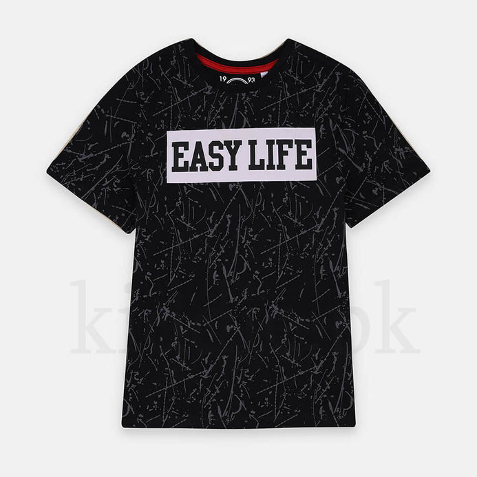 SN Black Pattern Easy Life Printed T-shirt 1935