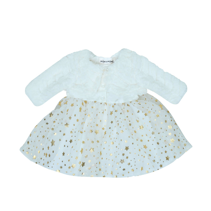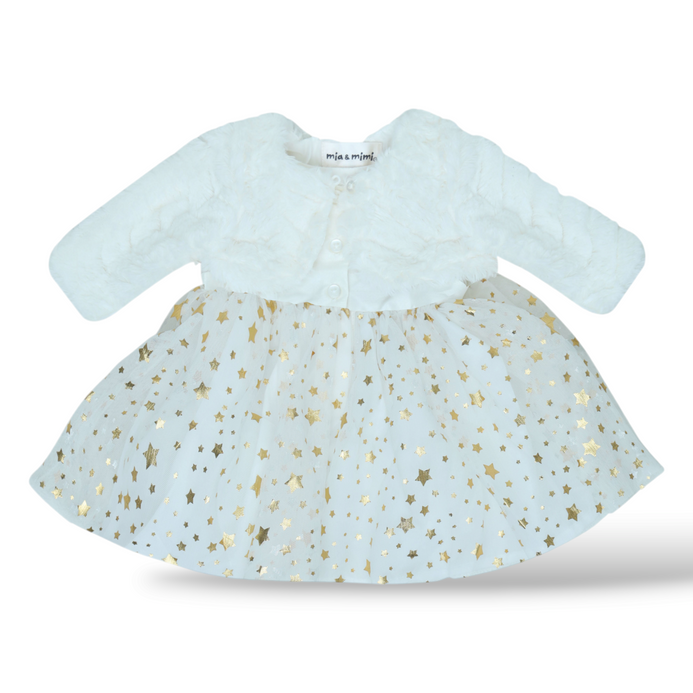 Mia White Fur Jacket and Fancy Frock Set 13252