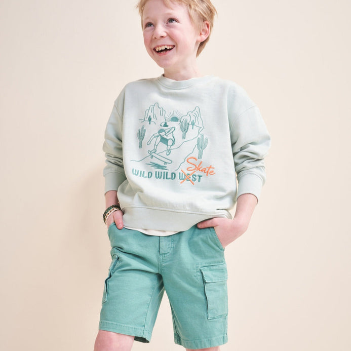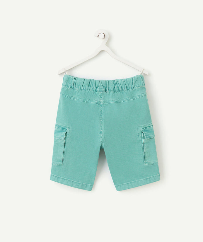 Cargo shorts Responsible viscose Green color Elasticated, adjustable waistband Zip and button opening Front pockets |