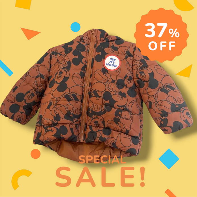Disney Mickey Mouse Brown Hooded Puffer Jacket 13348