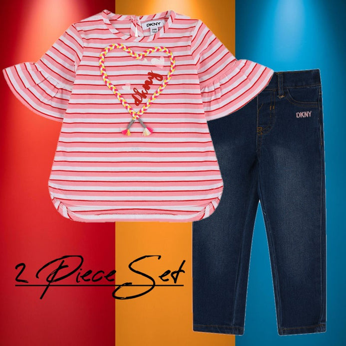 DKN Y Heart Tessle Pink shirt with pant 2 Piece Set #7075