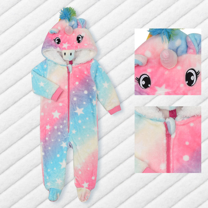 Rainbow Unicorn Fur Babygrow Costume with covered Feet 13413