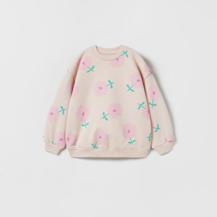 ZR Flower Printed Light Fleece Sweatshirt 13477