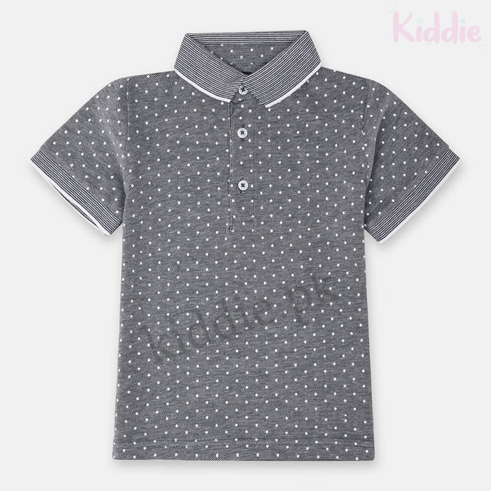 Cut Labelled Grey Dotted Polo Shirt 3774