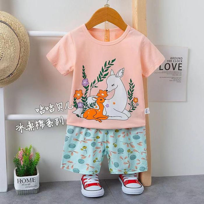 Imported Deer Peach Short and Shirt Set Cotton #13630