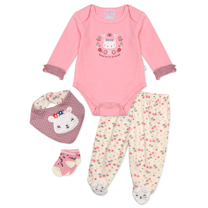 Bunny Pink Romper Pajama Bib and Socks Starter Set 12890