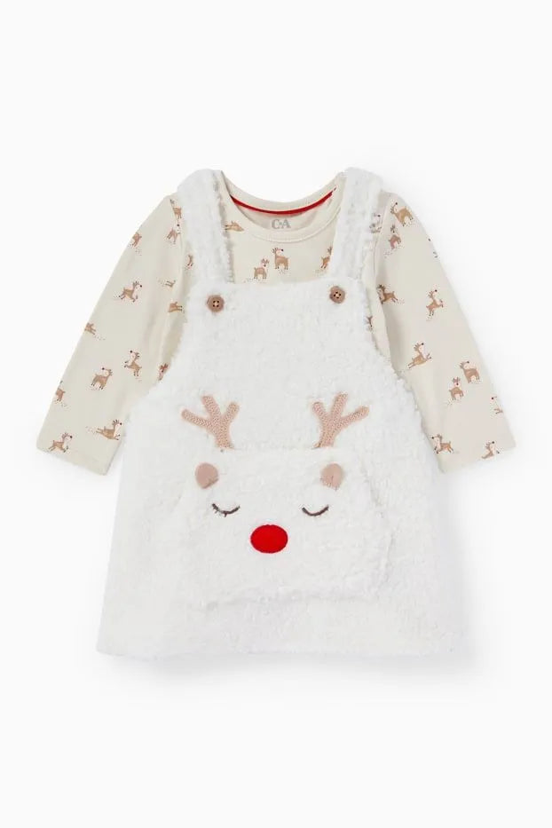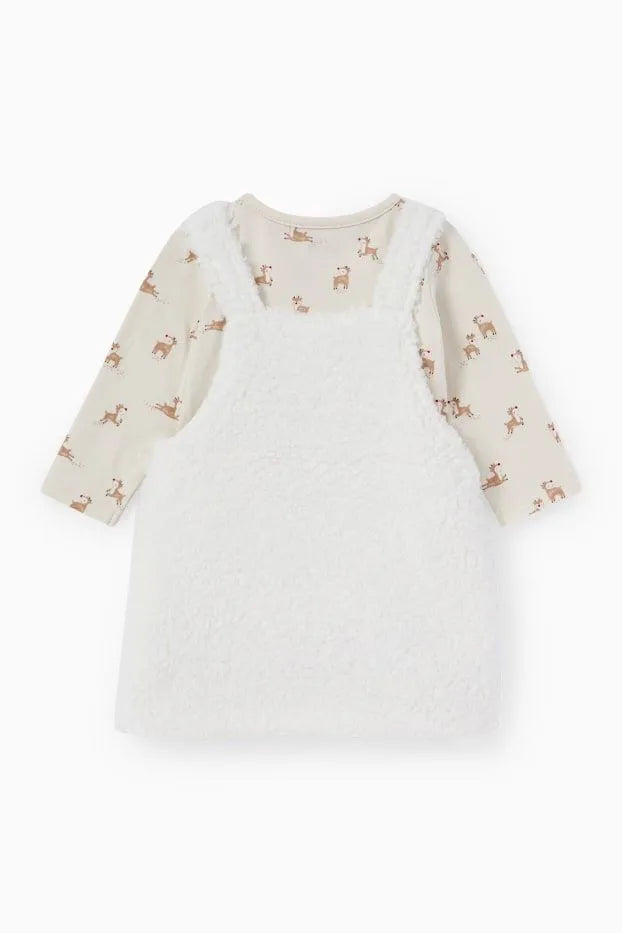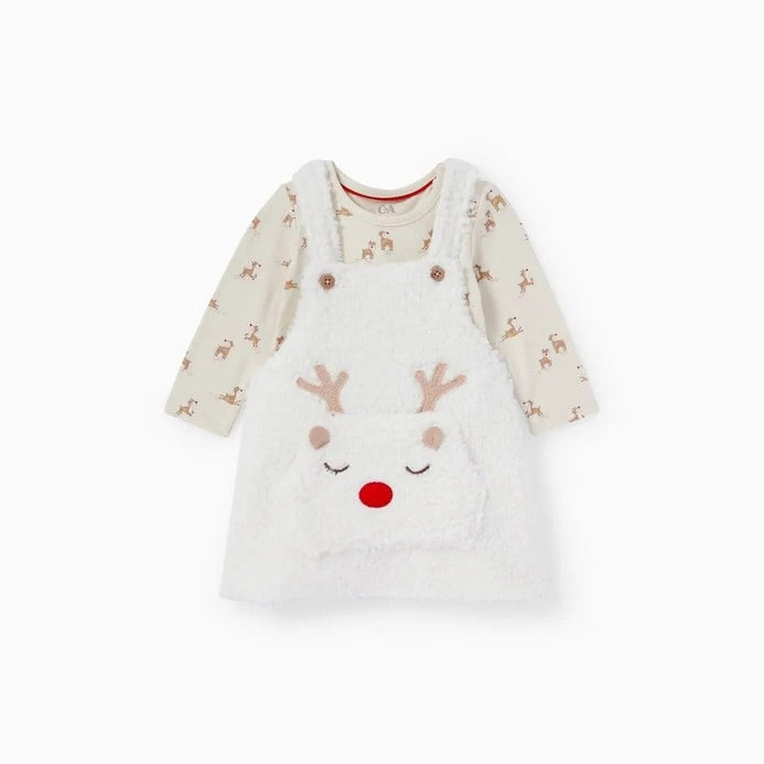 CA Randeer Fur frock dungaree with Bodysuit Set 13260