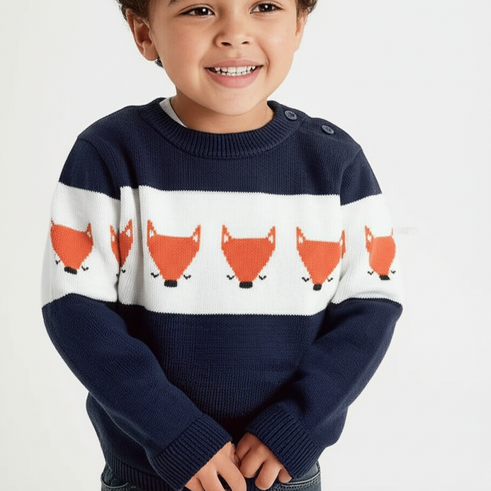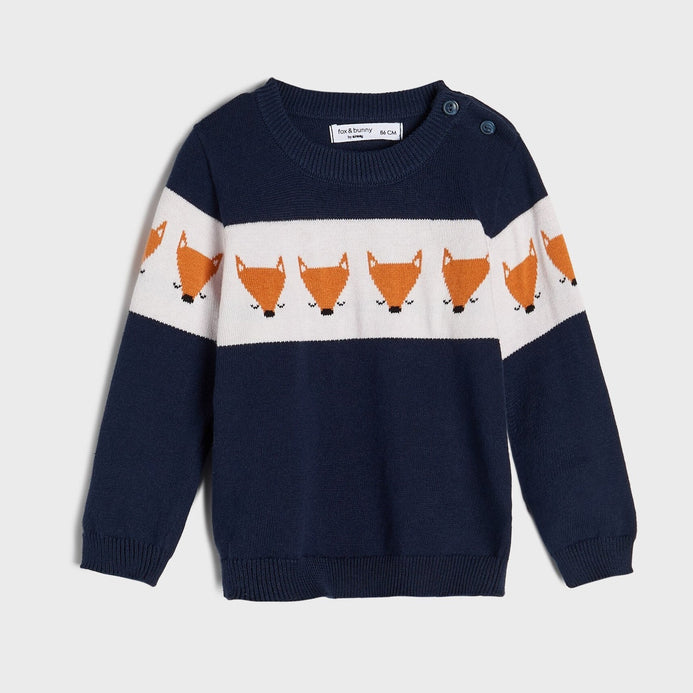Fox Bunny Fox Face Blue Knitted Sweater 11535