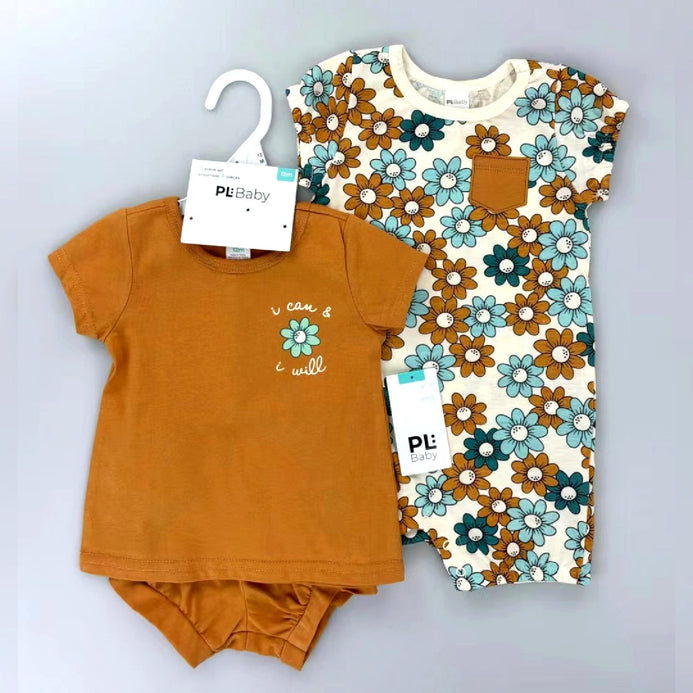I Can Brown Shirt Shorts with Bodysuit Set 13006