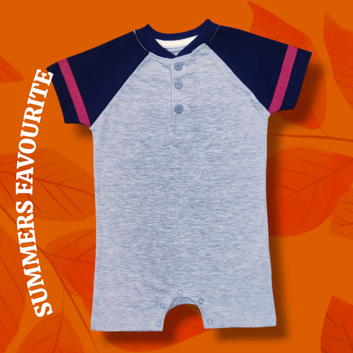 LEE Grey Blue Sleeves Romper Bodysuit 13522