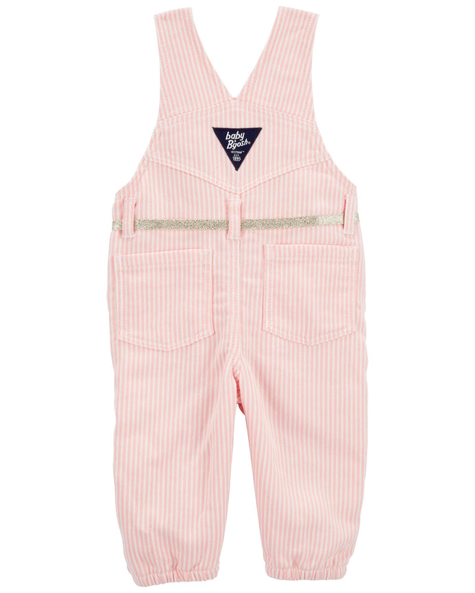 Oshksh Pink Hickory Stripe Full Length Overalls Dungaree with Ribbon Belt 12142
