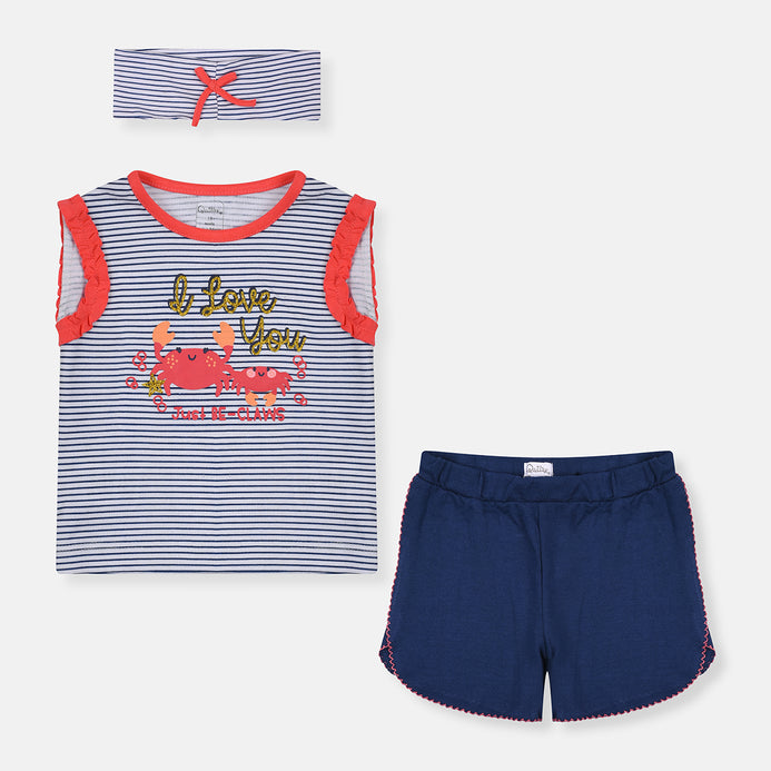 3 Piece set Includes one Shirt One Hairband and Shorts |