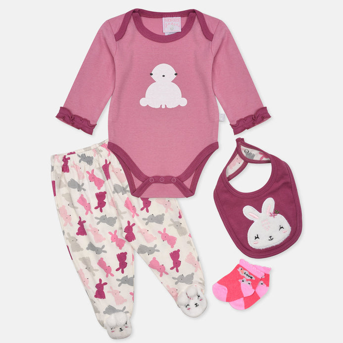 Rabbit Pink Romper Pajama Bib and Socks Starter Set 12889