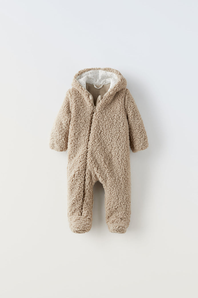 *Please check size chart before Placing order ( Inches ) Warmly padded, this cosy pramsuit will keep your little one snug and warm when you head outdoors. Plain faux shearling overalls with a hood, front pockets and button fastening